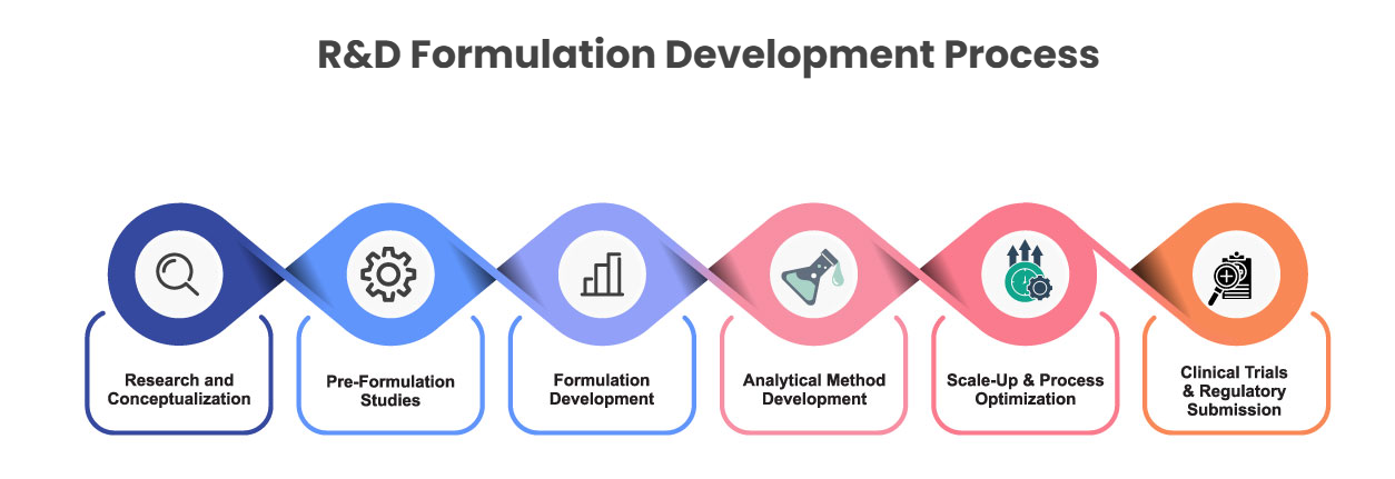 Our R & D formulation is powered by a Highly skilled team of scientist with extensive knowledge of latest trends and developments in pharmaceuticals formulations, analytical, and regulatory compliance. Our state of art facilities, combined with expertise of our scientists, enable us to create innovative products and technologies that are both patentable and commercially visible on a global scale.